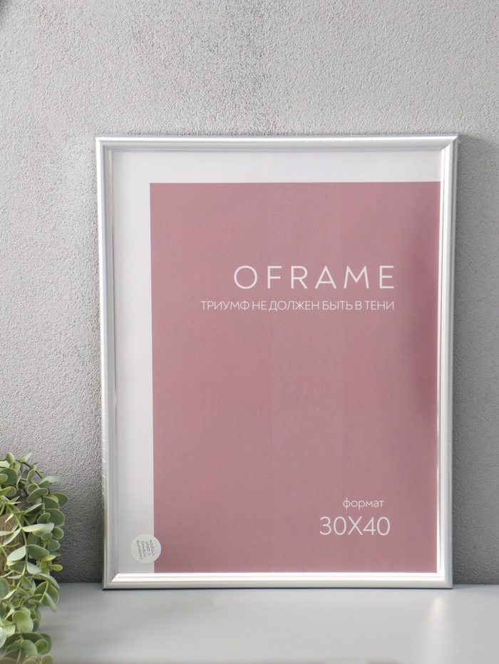 Фоторамка для фото 30х40 см "Oframe", пластик, серебряный, (пластиковый экран)