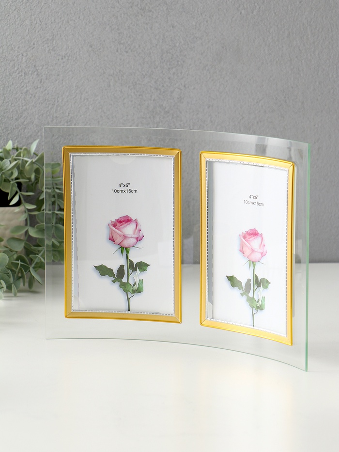 Фоторамка-коллаж на 2 фото 10×15 см «Золотой кант», стекло, вертикальная, закруглённая, прозрачная, 28×20.5 см