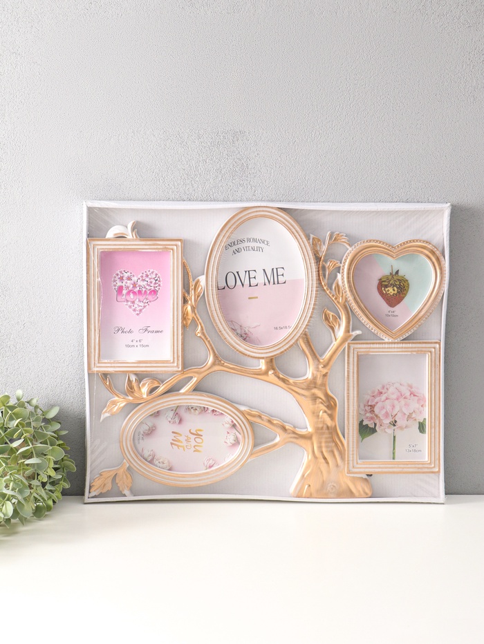 Фоторамка - коллаж на 5 фото 10×15 см, 13×13 см, 13×18 см «Старое дерево», пластик, белая с золотом, 46.5×37.5 см
