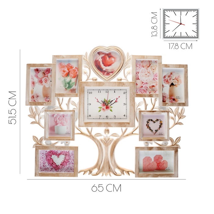 Композиция может стать отличным декором для спальни или гостиной, прихожей, детской комнаты и на любой стене, сохраняя самые тёплые воспоминания. Настенные часы можно использовать в качестве подарка маме, бабушке, папе, брату, сестре, другу, подруге на новоселье, новый год или на любой другой праздник.