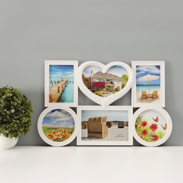 Создавайте тематические серии из фото и периодически их меняйте. Фоторамка пластик на 6 фото 13х13 см 10х15 см 13х18 см "Семейная" белая 46,5х29,5 см — отличная возможность не ограничиваться вставкой одной фотографии, а одновременно разместить несколько дорогих сердцу снимков.