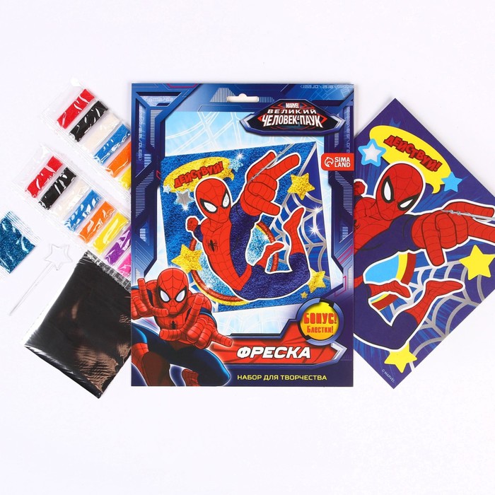 Фреска из фольги, блёсток и песка — увлекательный вид творчества, который понравится любому малышу. Ведь раскрашивать любимых героев так здорово! Отдели защитный слой с одной детали картинки и заполни его фольгой. Важно! Фольгу нужно прикладывать на клеевую основу серой стороной. Заполни другие детали песком и укрась их блёстками – и шедевр готов!