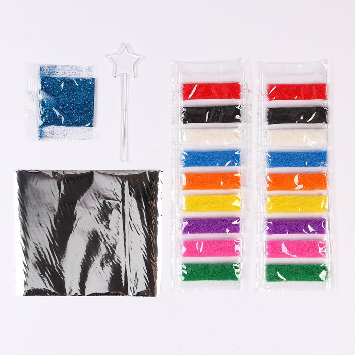 Создавать фактурную и разноцветную картину из песка и блёсток весело и интересно!