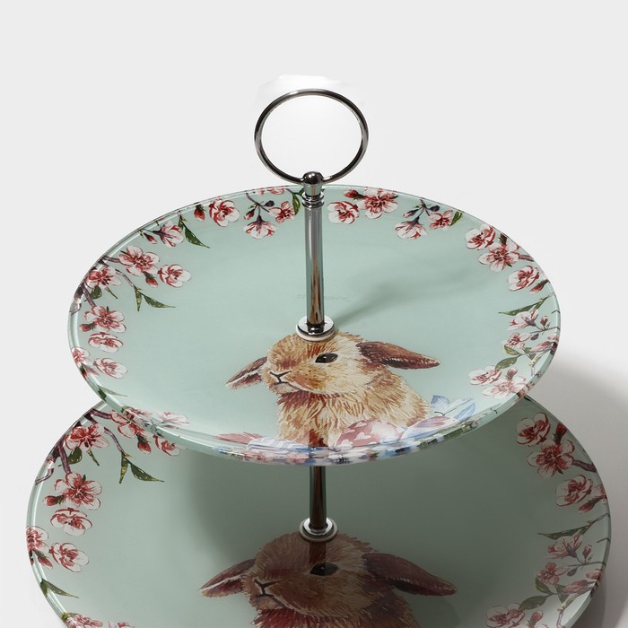 Оригинальное 2-х ярусное блюдо изготовлено из качественного и прочного стекла. Блюдо можно использовать для подачи фруктов и различных кондитерских изделий. Благодаря красочному дизайну эта посуда станет чудесным украшением праздничного стола.