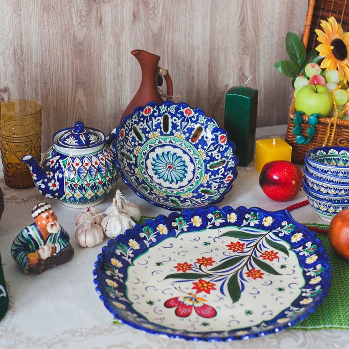 Риштан — город на востоке Узбекистана, один из древнейших в Ферганской долине. С давних времён Риштан славится своим гончарным искусством изготовления цветной керамики. Красноватую глину для изделия добывают в самом городе. Мастера утверждают, что их глина настолько высокого качества, что даже не нуждается в предварительной обработке. Дополните коллекцию кухонных аксессуаров пряными восточными нотами.