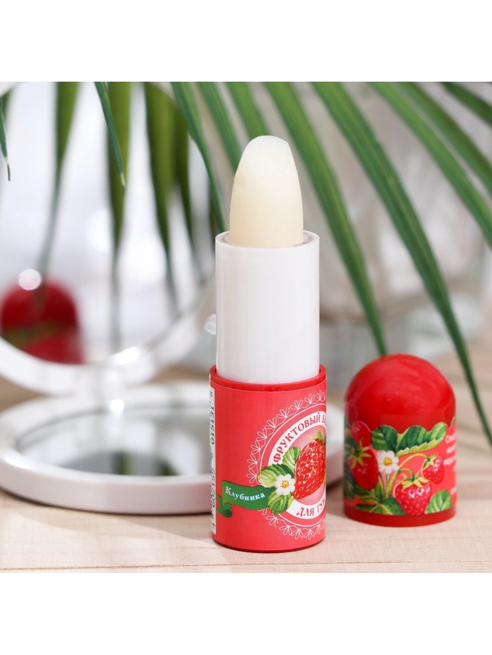 Гигиеническая помада с ароматом спелой клубники. Содержит натуральные компоненты, которые бережно и эффективно смягчают и защищают губы. Активные компоненты: пчелиный воск, оливковое масло, экстракт ромашки, пантенол, касторовое масло, витамин Е, ланолин. Губы увлажнены и защищены от воздействия ветра или мороза.