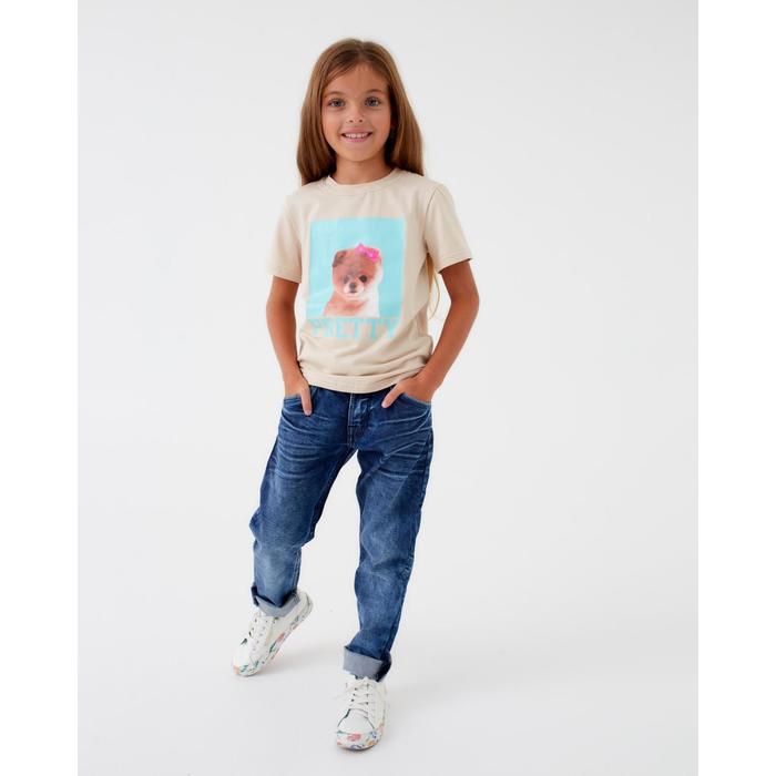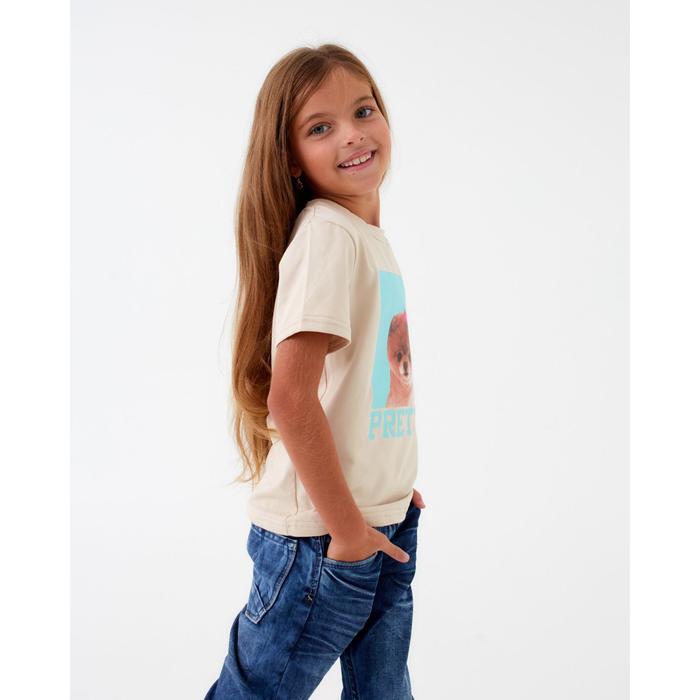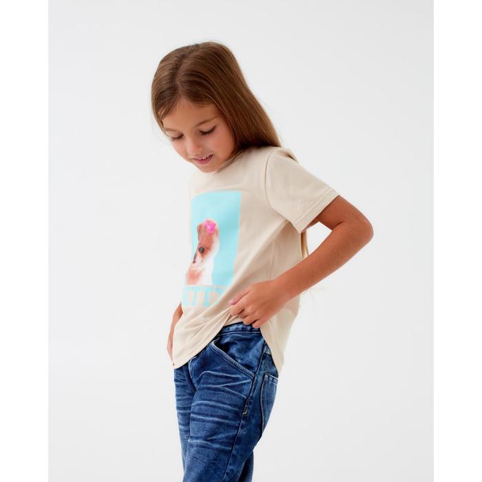 Футболка детская MINAKU: Exclusive print, цвет молочный, рост 128 см