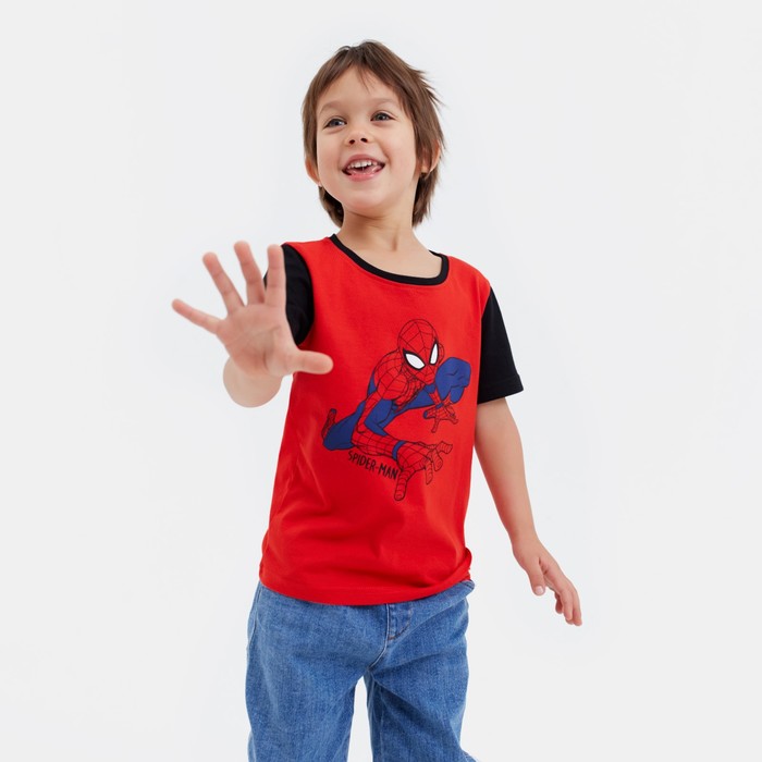 Футболка детская MARVEL «Человек паук», рост 110-116 (32), цвет красный/чёрный