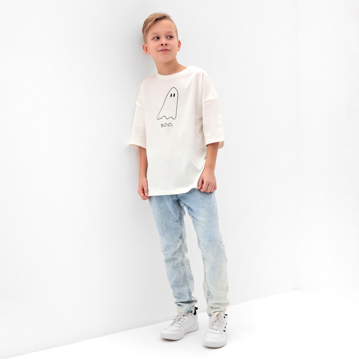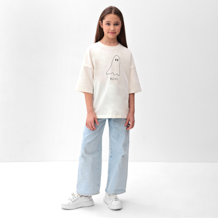 Футболка детская MINAKU: Exclusive print, цвет молочный, рост 110 см