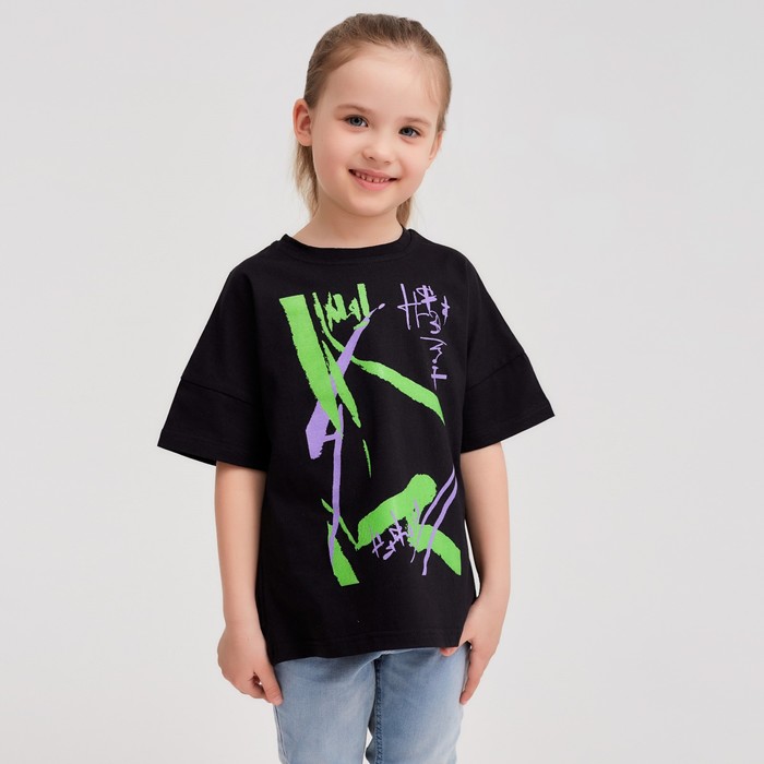 Футболка детская MINAKU Graffiti, чёрная, рост 128 см