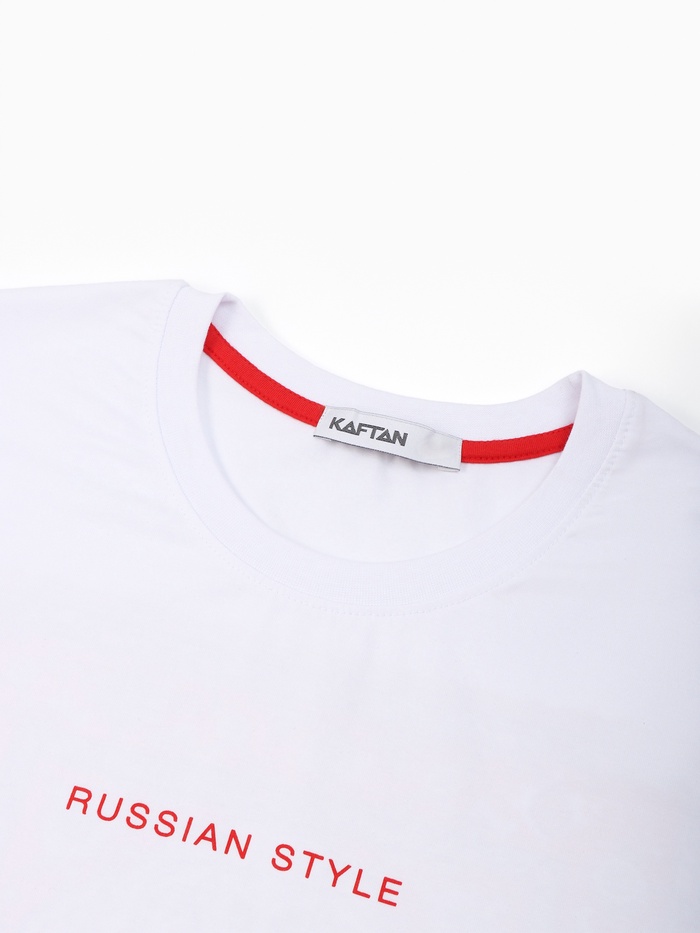 Подчеркните свой уникальный стиль с нашей белой мужской футболкой в русском стиле от KAFTAN. Эта футболка – это современное прочтение традиционных мотивов, созданное для тех, кто ценит оригинальность и комфорт.