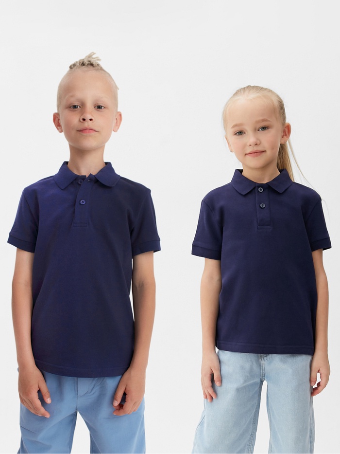 Футболка поло детская MINAKU: Basic line, тёмно-синяя, рост 134 см
