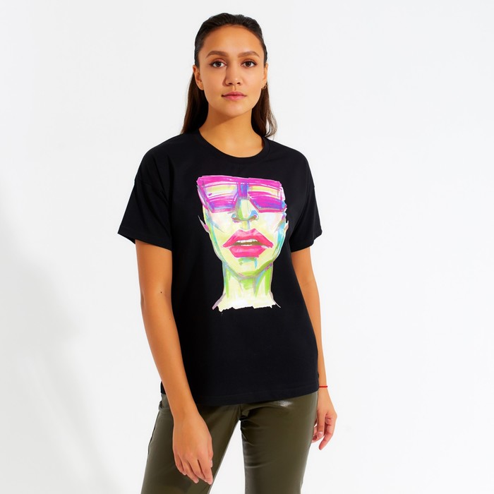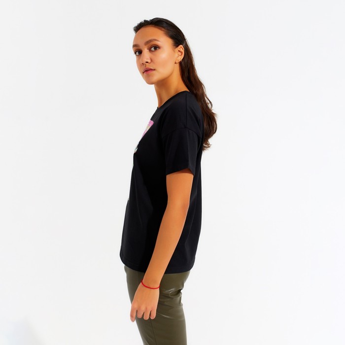 Футболка женская MINAKU "Girl" цвет чёрный, р-р 48