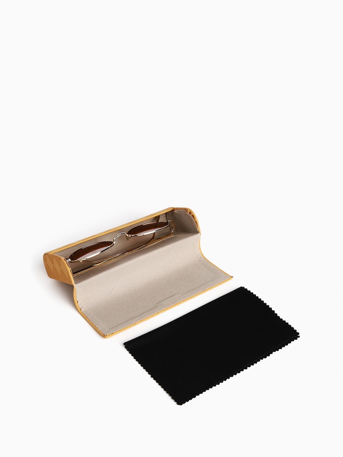 Футляр для очков – стильный и надежный аксессуар для современных женщин. Изготовленный из искусственной кожи в светло-жёлтом оттенке, он сочетает в себе элегантность и практичность. Жёсткий корпус защищает ваши очки от повреждений, а удобный магнитный замок обеспечивает лёгкое открывание и закрывание. При длине 15,4 см он идеально подходит для различных размеров очков.