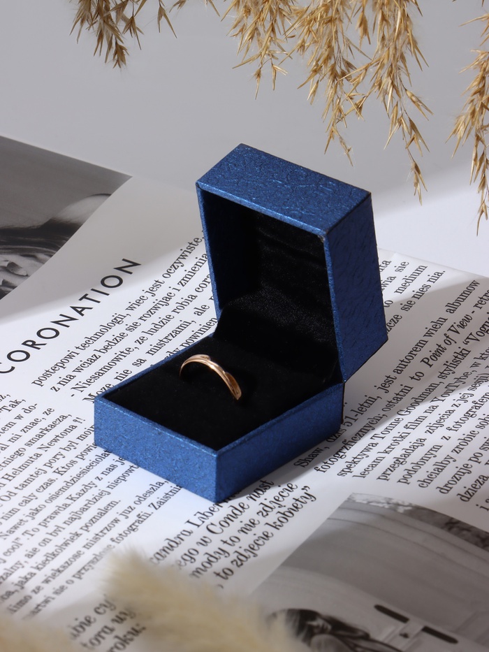 Внутри футляр оснащен мягкой подкладкой, которая надежно фиксирует кольцо, предотвращая его повреждения и обеспечивая надежную защиту. Компактный размер футляра делает его удобным для хранения и транспортировки украшений, сохраняя их в идеальном состоянии.