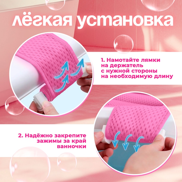 Детский текстильный гамак для купания станет удобным решением для безопасного и комфортного купания малыша. Нежный розовый цвет добавит уюта и нежности в процесс водных процедур, помогая создать расслабляющую атмосферу для ребёнка. Благодаря удобной конструкции он фиксируется на ванне, обеспечивая поддержку малыша и освобождая руки родителей.