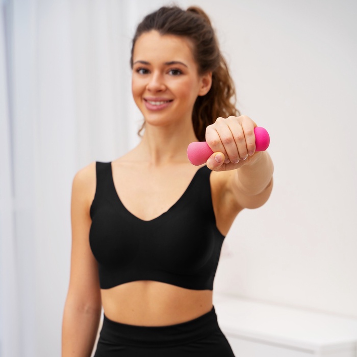 Цельная конструкция гантели обеспечивает её долгопрочность.
