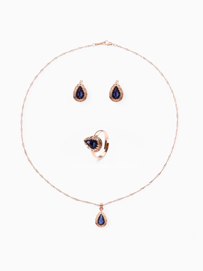 Гарнитур 3 предмета: серьги, кулон, кольцо безразмерное «Эдель» капля, цвет тёмно-синий в золоте, 45 см