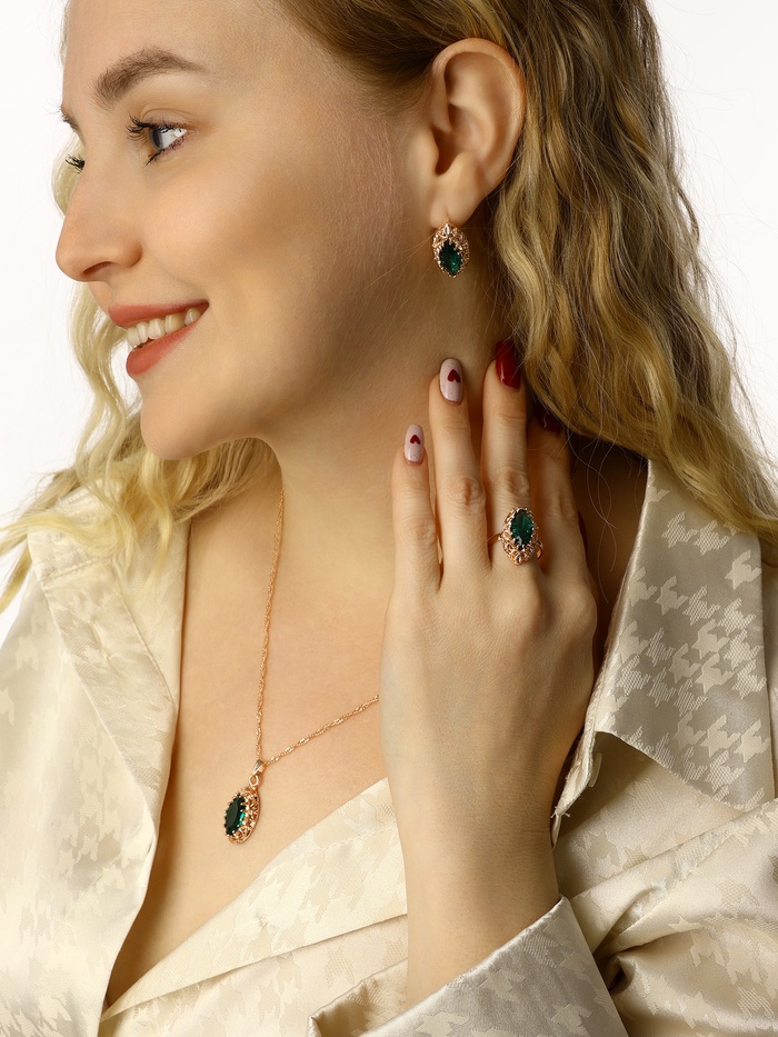 Гарнитур из трёх предметов: серьги, кулон и кольцо — это уникальный набор, который можно носить как вместе, создавая гармоничный образ, так и по отдельности, добавляя акцент в каждую деталь. Кольцо выполнено в безразмерном формате, что делает его универсальным и подходящим для любого женского пальца. Этот комплект сочетает в себе элегантность и практичность, идеально дополняя как повседневный стиль, так и вечерние наряды.