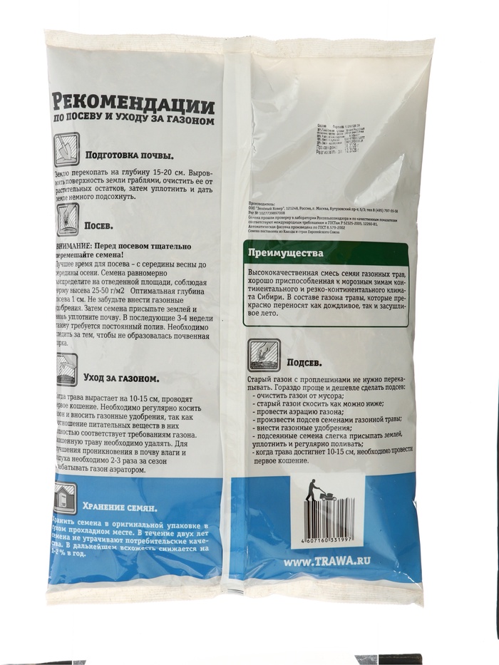 - Оптимальная площадь покрытия: одного пакета весом 1 кг достаточно для засева 40 квадратных метров участка. Это идеальный объем для небольшого сада или зоны отдыха.