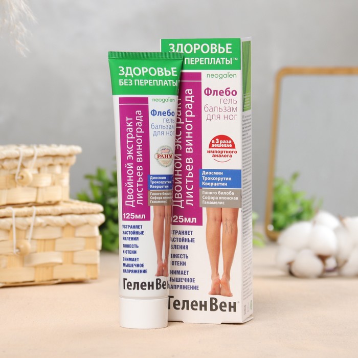 Гель-бальзам "Вен Флебогель" с двойным экстрактом листьев винограда помогает укрепить сосуды, снять усталость и тяжесть в ногах, а также улучшить состояние кожи. Попробуйте этот гель-бальзам для облегчения нагрузки на ноги и достижения ощущения свежести и комфорта.