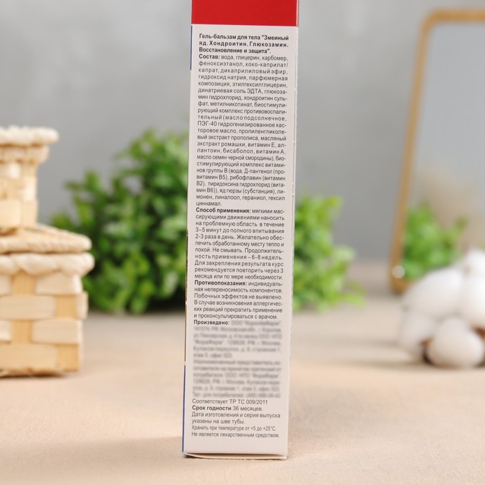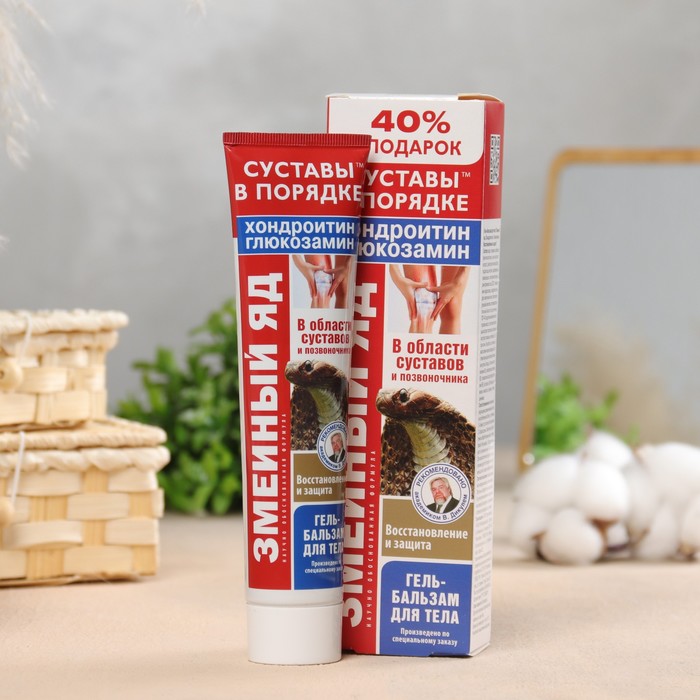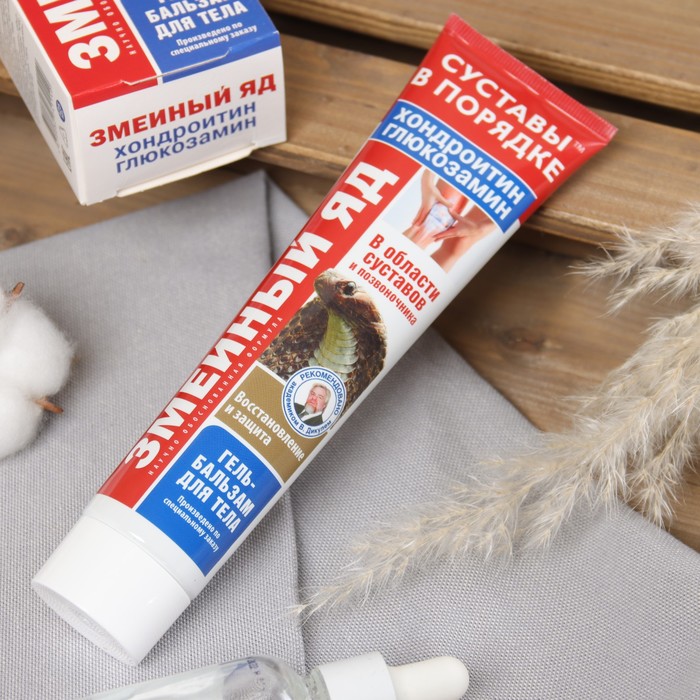 Змеиный яд на основе яда гюрзы, применяется при болезнях суставов с целью снятия боли и воспаления. Оказывает чрезвычайно сильное благотворное действие на суставы и опорно - двигательный аппарат в целом. Хондроитин сульфат - основной структурный компонент хряща и естественный защитник (хондропротектор) его клеток. Обеспечивает механические и эластические свойства суставных поверхностей.