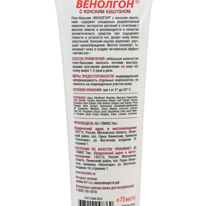 Гель-бальзам «Венолгон с конским каштаном» рекомендуется как вспомогательное средство при лечении варикозного расширения вен, тромбофлебита. Используется для профилактики тромбозов, оттёков и посттравматических поражений вен.