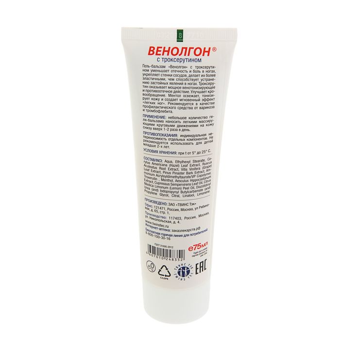 Гель-бальзам «Венолгон» с троксерутином снимет отёк и боль в ногах, укрепит стенки сосудов и придаст им эластичности.