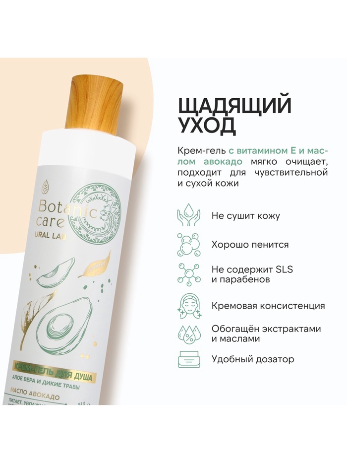 Гель для душа, 300 мл, аромат алое вера и диких трав, BOTANIC CARE by URAL LAB