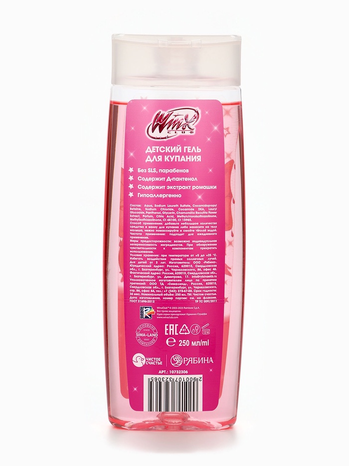 Детский гель для душа ВИНКС с ароматом тутти-фрутти превратит купание в волшебное приключение! Подходит для малышей от 3 лет. Нежная формула бережно очищает кожу, не сушит и не раздражает. Флакон 250 мл.