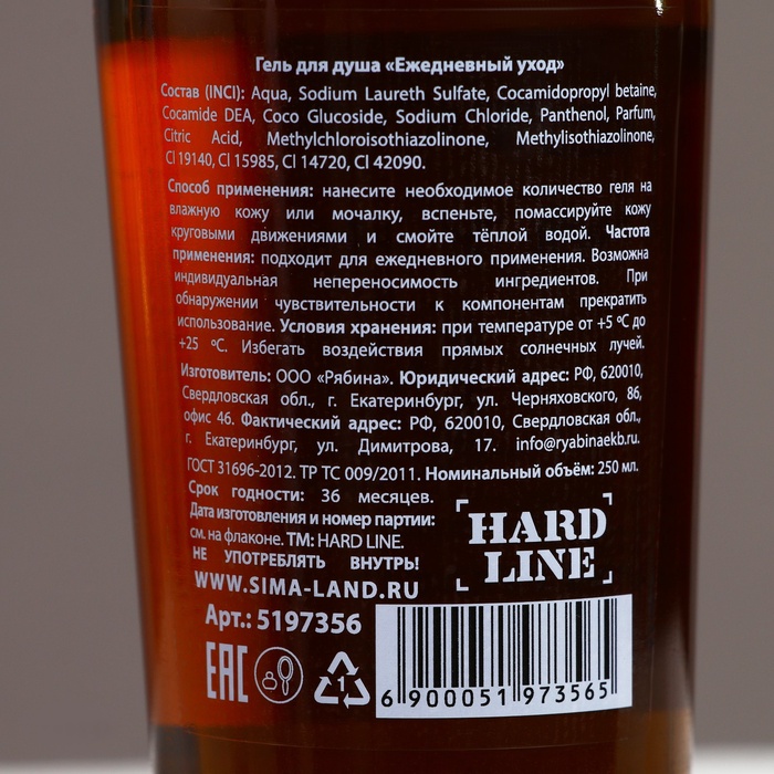 Гель для душа коньяк «Настоящему мужику», 250 мл, аромат сандала и бергамота, HARD LINE