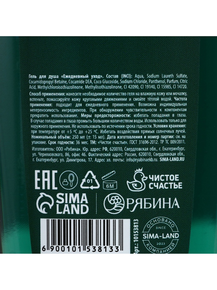 Состав: Aqua, Sodium Laureth Sulfate, Cocamidopropyl Betaine, Cocamide DEA, Coco Glucoside, Sodium Chloride, Panthenol, Parfum, Citric Acid, Methylchloroisothiazolinone, Methylisothiazolinone, CI 42090, CI 19140, CI 15985, CI 14720
