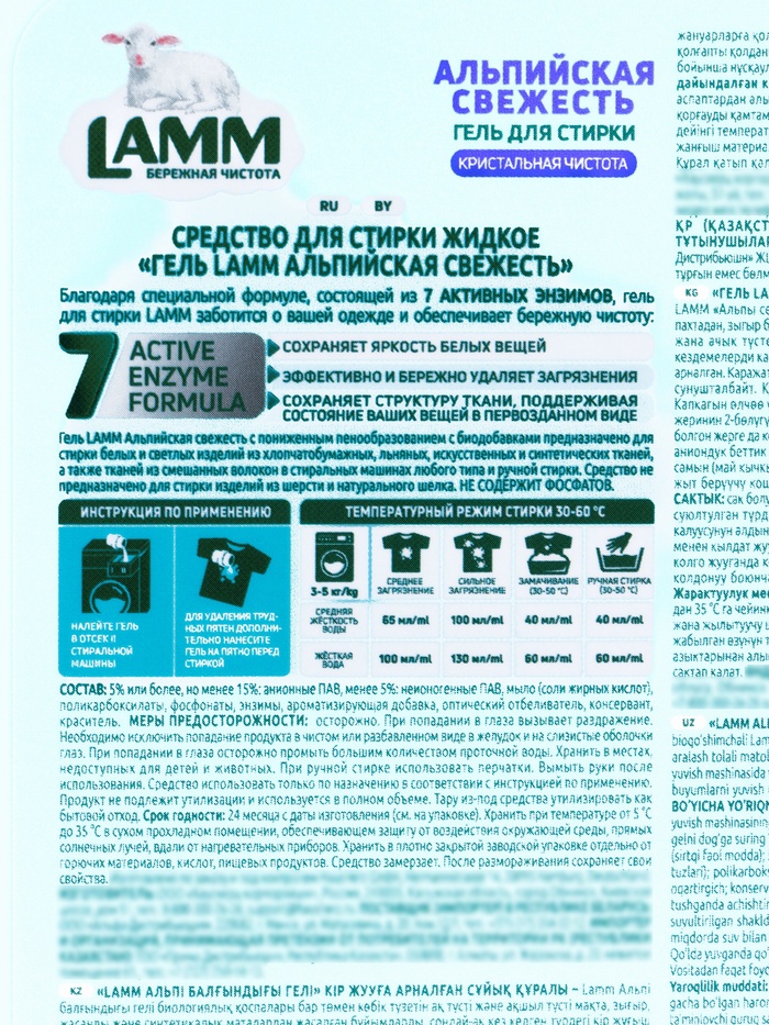 Гель для стирки LAMM Альписйкая свежесть, 2 л