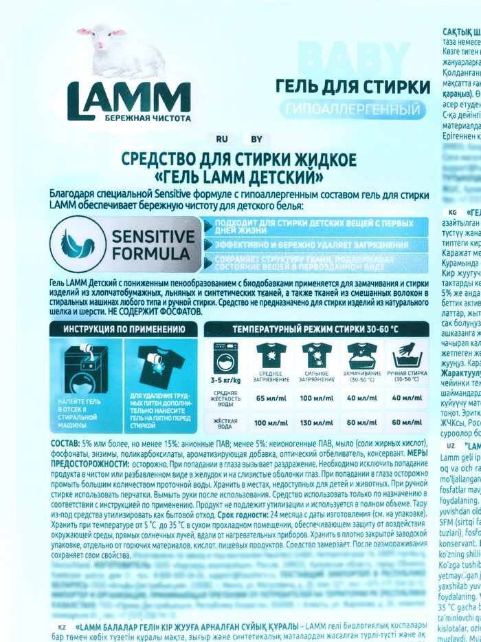 Гель для стирки LAMM Детский обладает нежным, свежим ароматом, который сохраняет бельё приятно пахнущим после стирки, не раздражая дыхательные пути и кожу ребёнка.