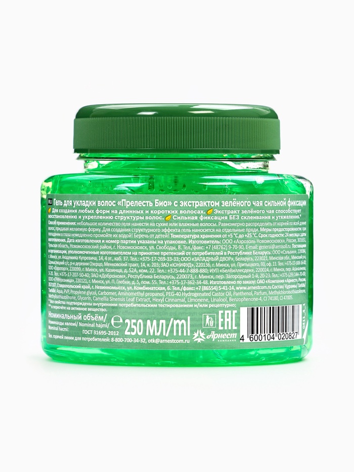 Гель для волос Прелесть Био Жизненная сила - средство для укладки и ухода за волосами с экстрактом зеленого чая. Здоровые волосы и стильная укладка - украшение каждой девушки. Стайлинг гель великолепно фиксирует прическу, формируя аккуратные структурные пряди без лишнего пушка и склеивания волос. Гель для укладки надежно сохраняет прическу в течение всего дня, обеспечивая объемные и легкие локоны без утяжеления. Средство для волос стайлинг гель Прелесть Био содержит до 80% натуральных компонентов в составе. Экстракт зеленого чая способствует укреплению структуры волос изнутри, наполняет жизненной силой и защищает от воздействия окружающей среды.
