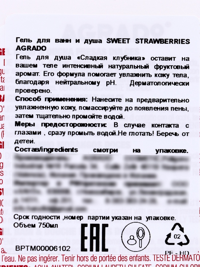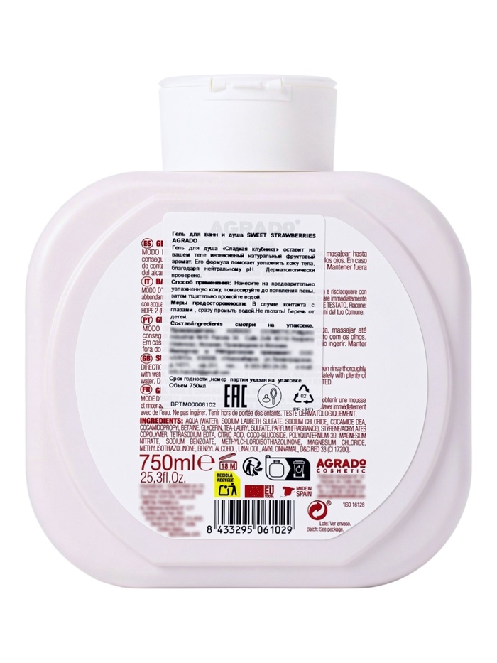 AGRADO Гель для ванн и душа "Сладкая клубника" 750 мл