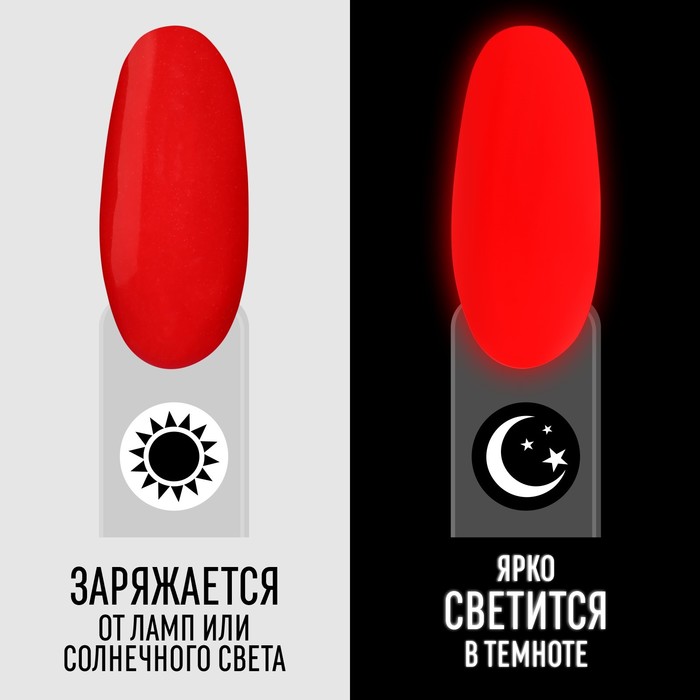 Гель лак для ногтей, люминесцентный, трехфазный, 8 мл, LED/UV, красный (46)