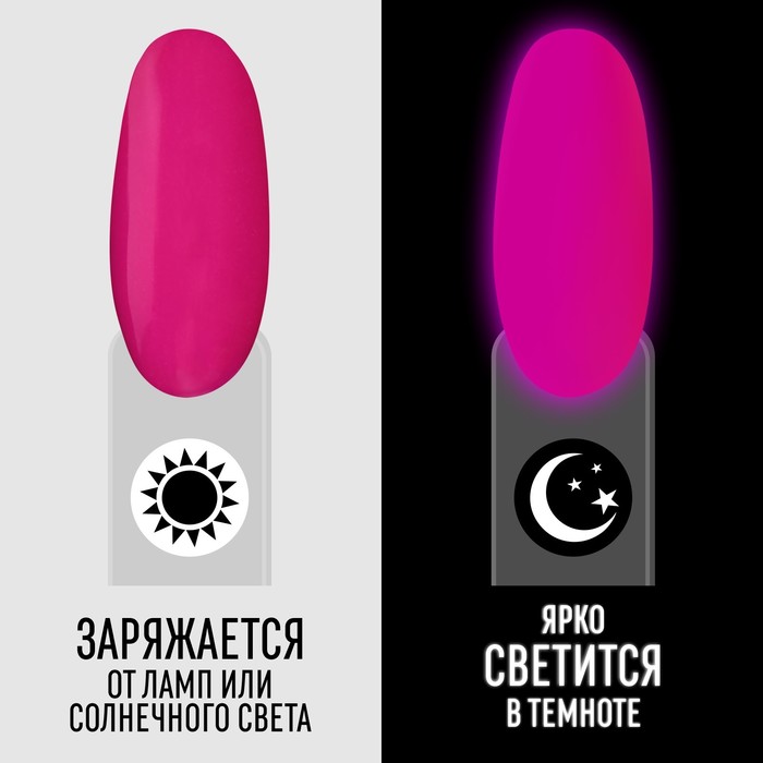 Гель лак для ногтей, люминесцентный, трехфазный, 8 мл, LED/UV, розовый (36)