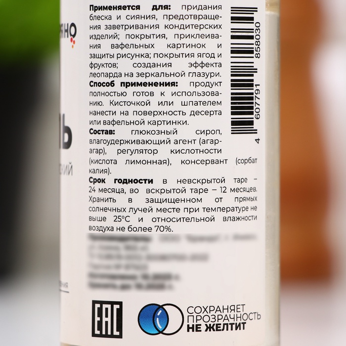 - Универсальность применения: Идеально подходит для смазывания коржей перед нанесением крема, для придания блеска свежим и консервированным фруктам на тортах и пирожных, для фиксации посыпки и декоративных элементов, а также для создания зеркальной глазури.