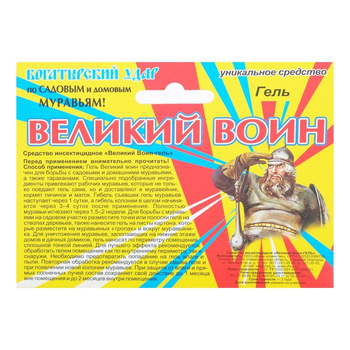 В заключение хотим отметить, что гель от муравьев "Великий Воин" – это высококачественное и эффективное средство для борьбы с насекомыми. Он не только быстро уничтожает их, но и защищает кожу от их укусов и жалений. Если вы столкнулись с проблемой насекомых в своем доме или на участке, рекомендуем обратиться к этому гелю – он поможет вам избавиться от них надежно и безопасно.