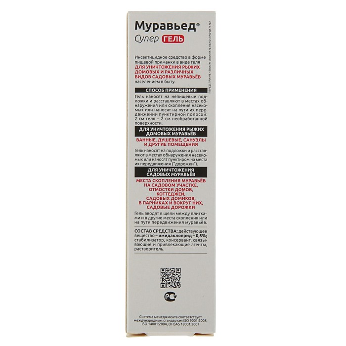 Способ применения: гель наносят на непищевые подложки и расставляют в местах обнаружения или скопления насекомых или наносят на пути их передвижения пунктирной полосой: 2 см геля – 2 см необработанной поверхности.