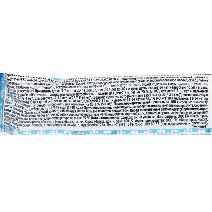 Состав: сахар, сгущённое с сахаром цельное молоко (нормализованное молоко, сахар), патока крахмальная, альбумин чёрный пищевой, аскорбиновая кислота (витамин С),ароматизатор ванилин.