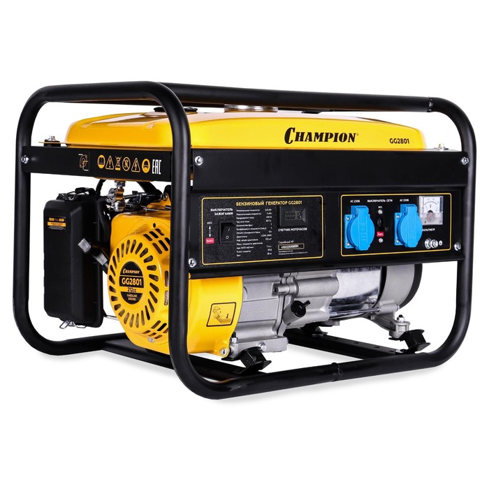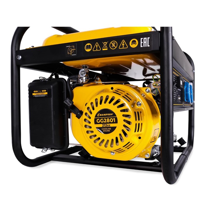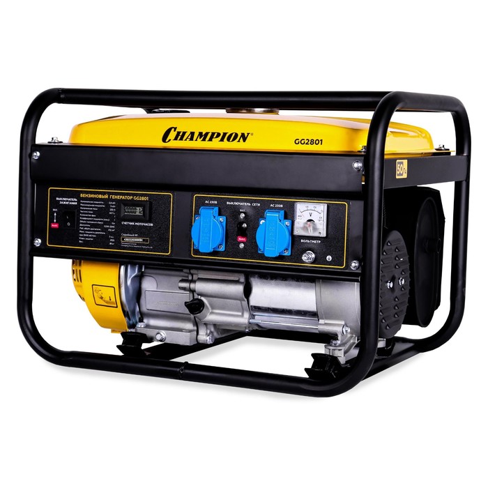 Генератор бензиновый CHAMPION GG2801, 4Т, 3 кВт, 220 В, 15 л, ручной старт обеспечит вас электроэнергией вдали от стационарных источников и на период проведения аварийных работ. Благодаря небольшим размерам устройство можно перенести в любое удобное для вас место. Ток вырабатывается посредством преобразования механической энергии двигателя внутреннего сгорания. Запаса топлива и мощности достаточно, чтобы обеспечить бесперебойную подачу электричества в течение нескольких часов.