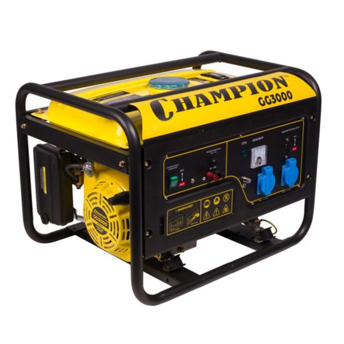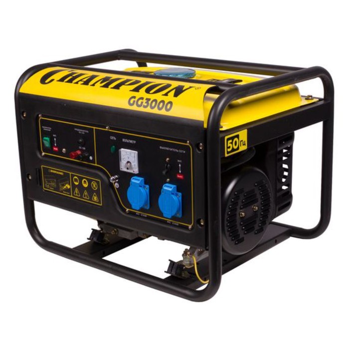 Генератор бензиновый CHAMPION GG3000, 4Т, 2.5 кВт, 220 В, 15 л, ручной старт обеспечит вас электроэнергией вдали от стационарных источников и на период проведения аварийных работ. Благодаря небольшим размерам устройство можно перенести в любое удобное для вас место. Ток вырабатывается посредством преобразования механической энергии двигателя внутреннего сгорания. Запаса топлива и мощности достаточно, чтобы обеспечить бесперебойную подачу электричества в течение нескольких часов.