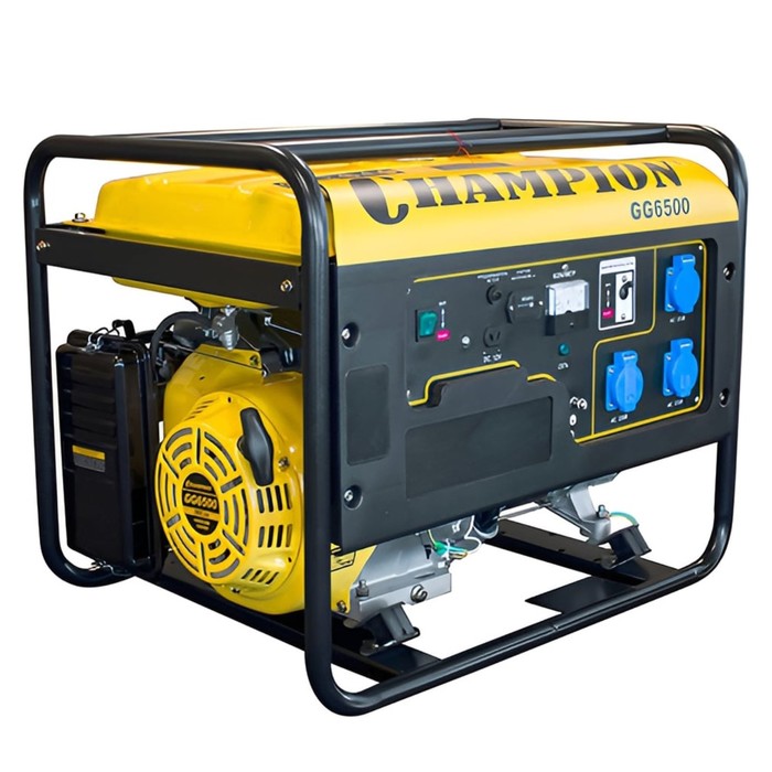 Генератор бензиновый CHAMPION GG6500, 4Т, 5.5 кВт, 220 В, 25 л, ручной старт обеспечит вас электроэнергией вдали от стационарных источников и на период проведения аварийных работ. Благодаря небольшим размерам устройство можно перенести в любое удобное для вас место. Ток вырабатывается посредством преобразования механической энергии двигателя внутреннего сгорания. Запаса топлива и мощности достаточно, чтобы обеспечить бесперебойную подачу электричества в течение нескольких часов.