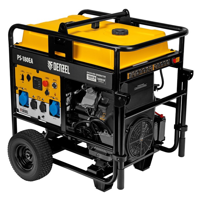 Генератор бензиновый DENZEL PS-180EA 946974, 18 кВт,230 В, 65 л, разъём ATS обеспечит вас электроэнергией вдали от стационарных источников и на период проведения аварийных работ. Благодаря небольшим размерам устройство можно перенести в любое удобное для вас место. Ток вырабатывается посредством преобразования механической энергии двигателя внутреннего сгорания. Запаса топлива и мощности достаточно, чтобы обеспечить бесперебойную подачу электричества в течение нескольких часов.