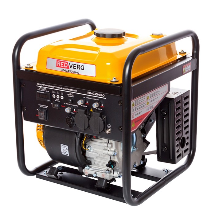 Генератор бензиновый инверторный RedVerg RD-IG4500H-O, 6.8 л.с., 220/12 В, ручной/эл.старт 1068921 обеспечит вас электроэнергией вдали от стационарных источников и на период проведения аварийных работ. Благодаря небольшим размерам устройство можно перенести в любое удобное для вас место. Ток вырабатывается посредством преобразования механической энергии двигателя внутреннего сгорания. Запаса топлива и мощности достаточно, чтобы обеспечить бесперебойную подачу электричества в течение нескольких часов.