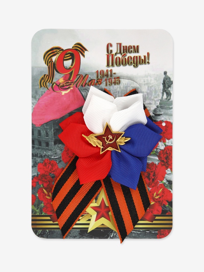 Георгиевская лента на 9 мая «Красная звезда», на магните, с цветком триколор