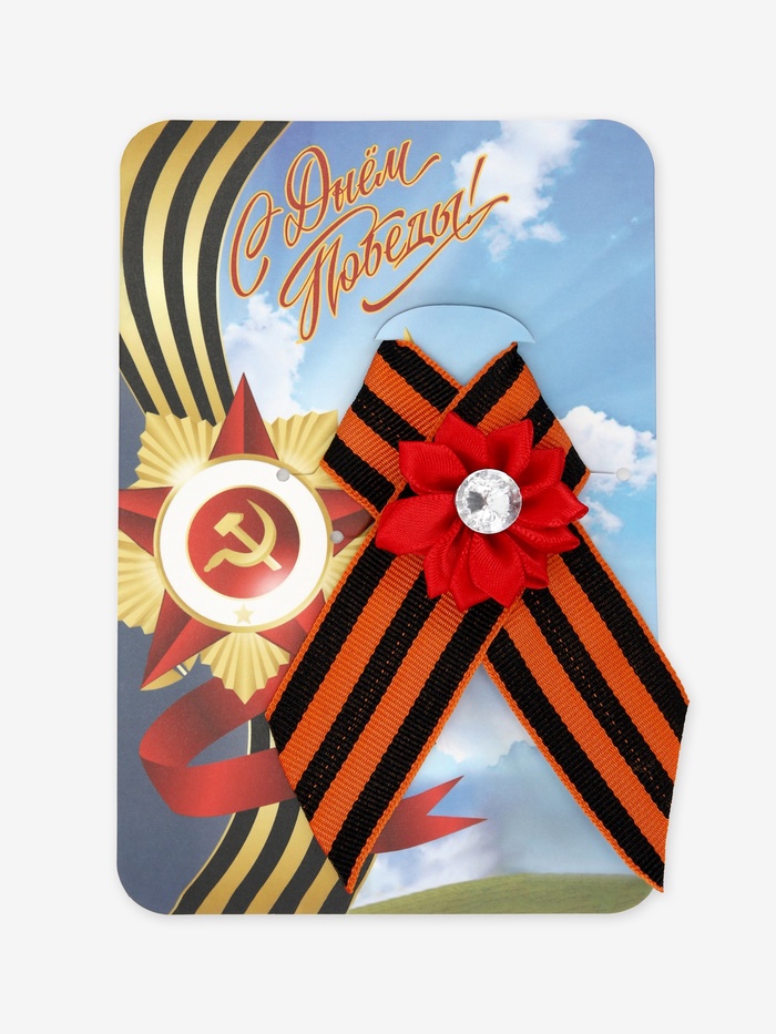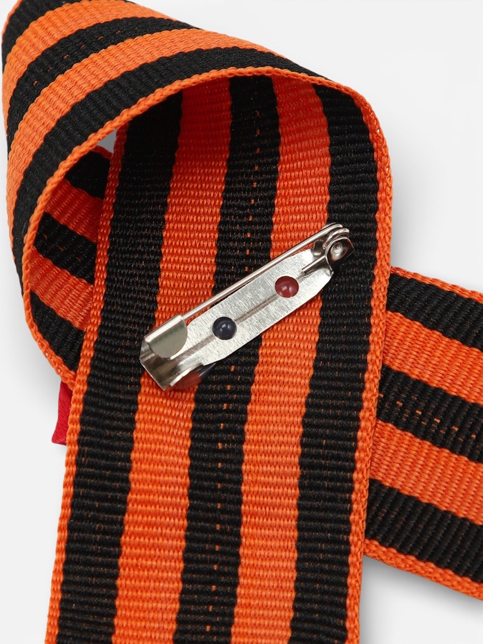 Георгиевская лента на 9 мая «Красная звезда», с булавкой и красным цветком