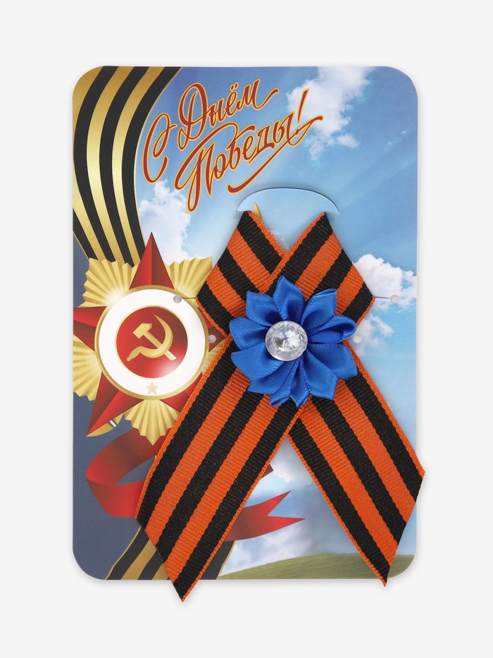 Георгиевская лента на 9 мая «С Днём Победы», с булавкой и синим цветком